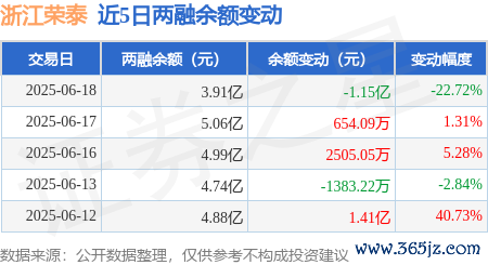 本站消息三叶草策略,6月18日,浙江荣泰(603119)融资买入1.64亿元,融资偿还2.79亿元,融资净卖出1.15亿元,融资余额3.9亿元,近20个交易日中有13个交易日出现融资净买入。